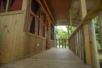 Las habitaciones presentan una decoración rústica con suelo de madera elegante y disponen de ventilador, balcón con vistas a los jardines y a la selva y baño privado externo con ducha de agua caliente y artículos de aseo gratuitos.